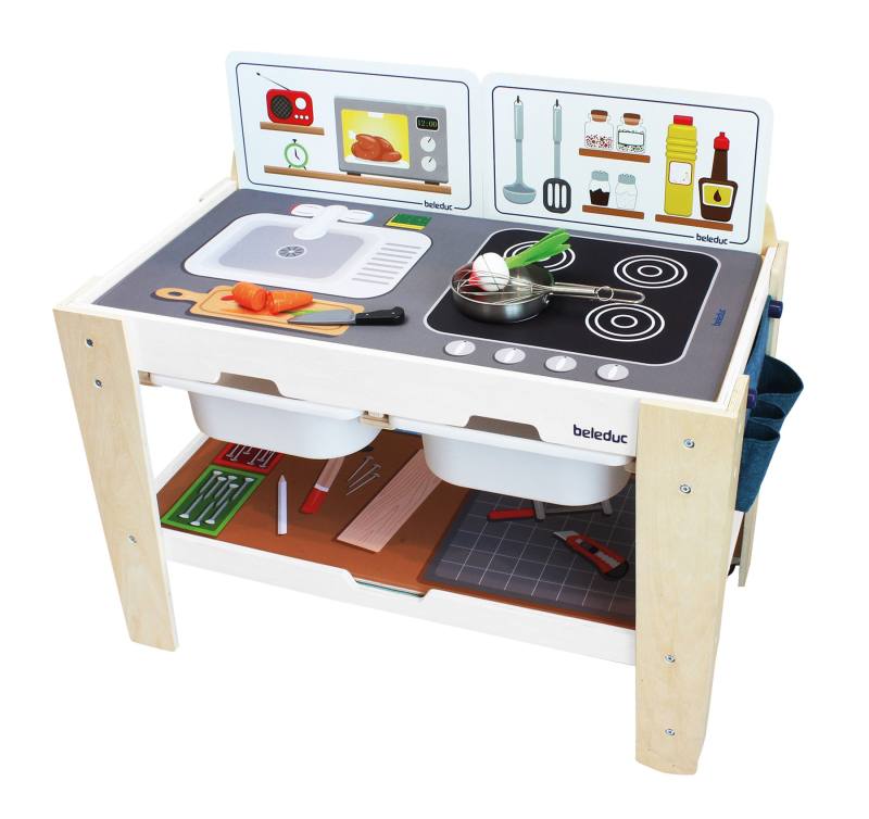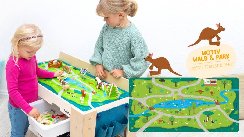 Ein Tisch – unzählige Spielideen! Dieser vielseitige Spieltisch verwandelt jeden Raum im Handumdrehen in eine Küche, Werkstatt, Stadt oder einen Park. Dank der vier austauschbaren XL-Spielmatten entstehen immer wieder neue Spielumgebungen, die Kinder zu kreativen Rollenspielen inspirieren.