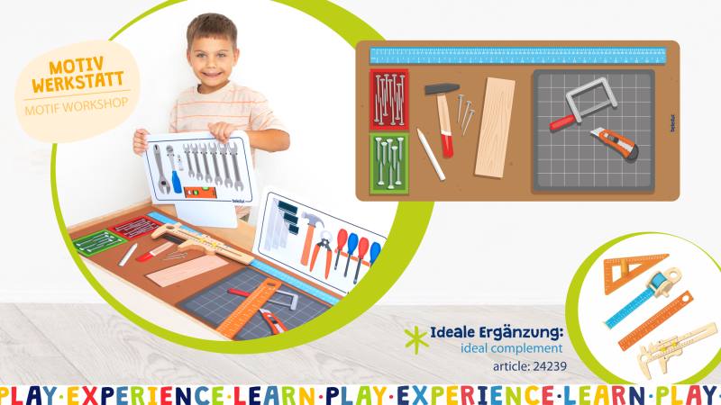 Ob kochen, bauen, tüfteln oder Geschichten erfinden – der Thementisch bietet die ideale Grundlage für freies Spiel im Gruppenraum, Kindergarten oder Kinderzimmer. Die doppelseitig bedruckten Steckkarten ergänzen die Kulissen und sorgen für noch mehr Abwechslung.