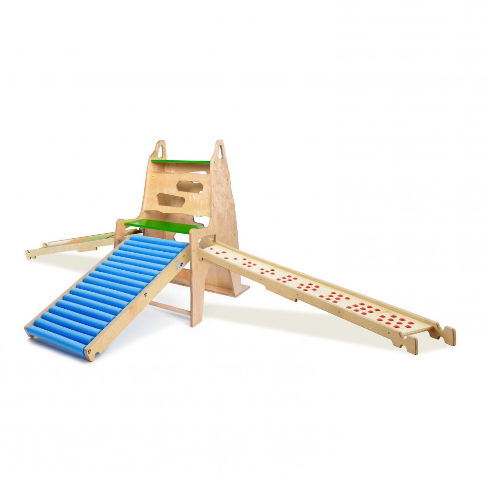 Ganz besonders ist, dass Sie auch die Rollenrutsche und Balancierbretter einhängen können um weitere Varianten aufzubauen.